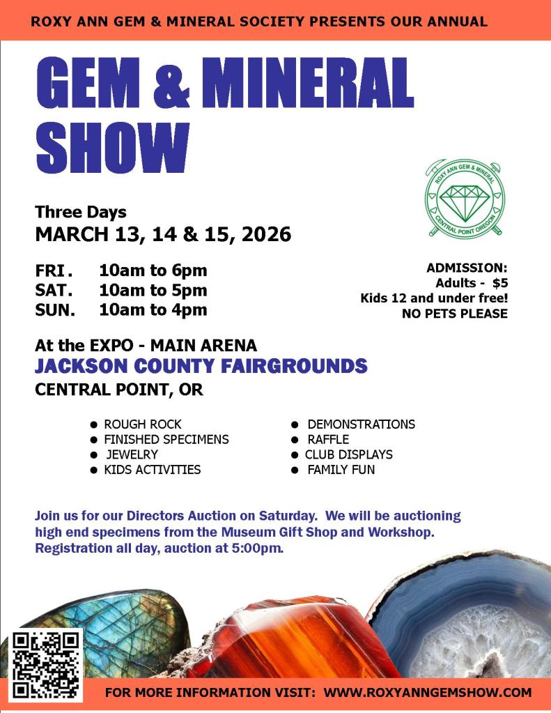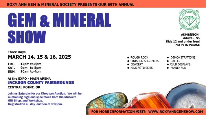 January 6, 2025November 2, 2025 Roxy Ann Gem and Mineral Show
